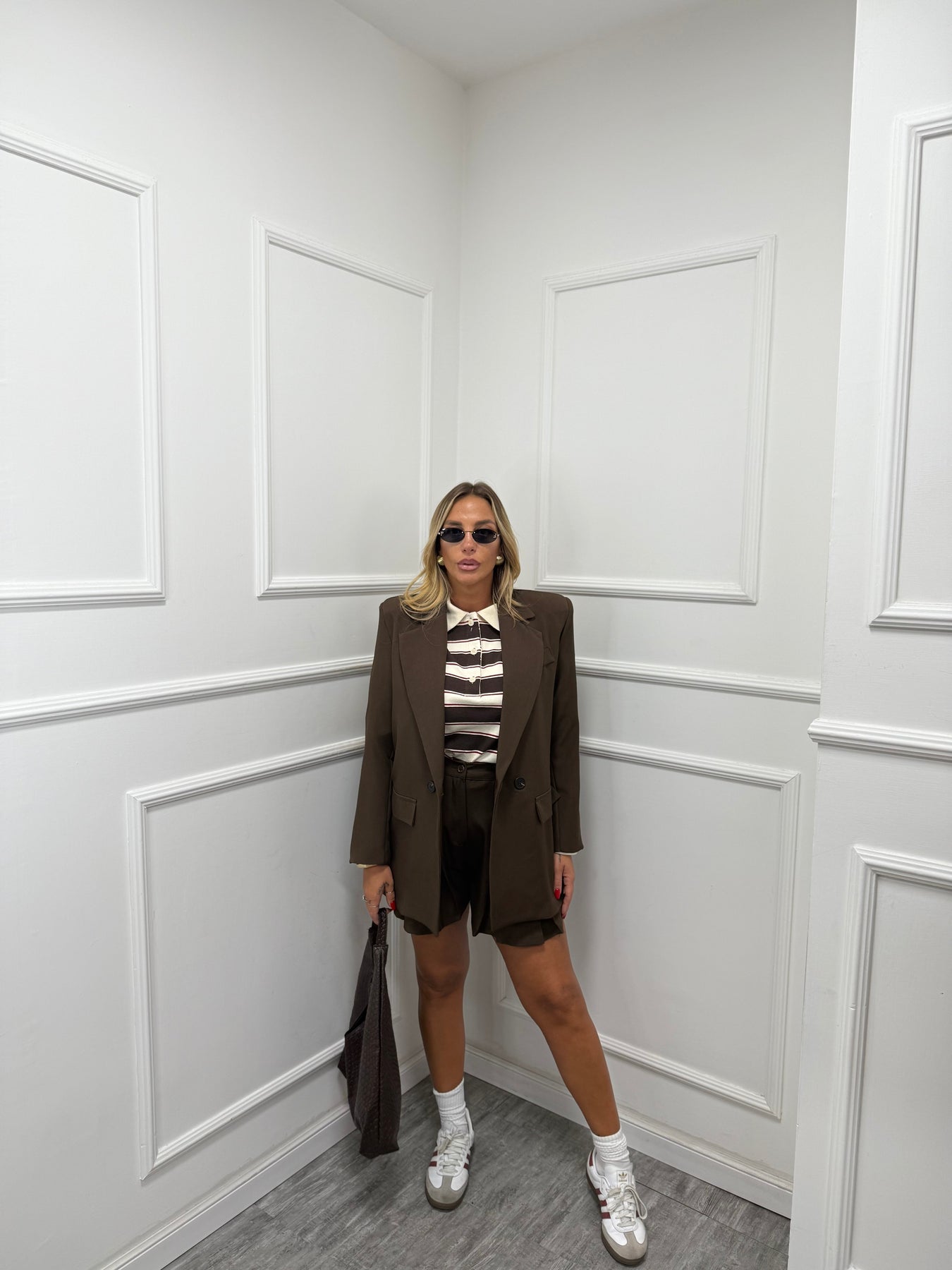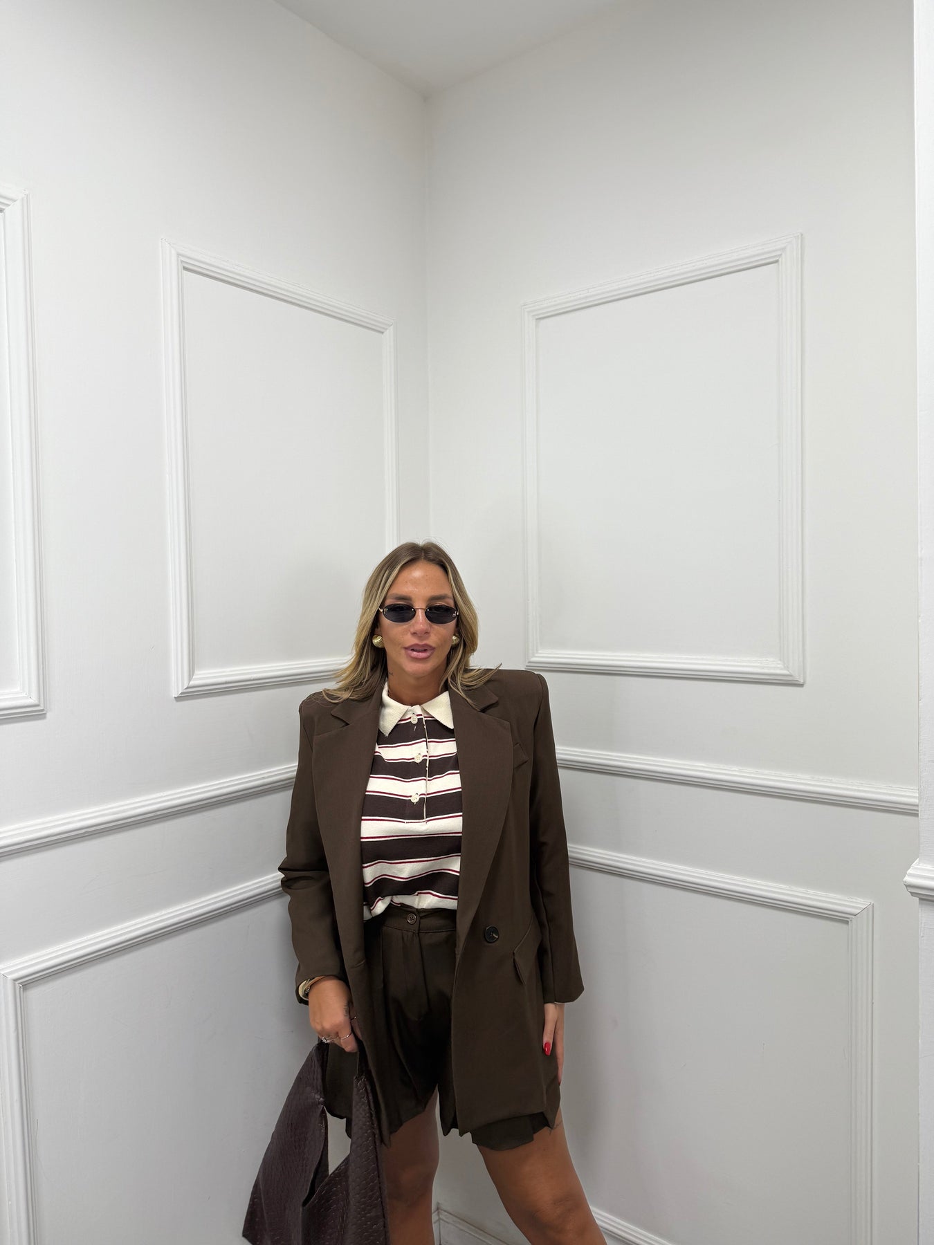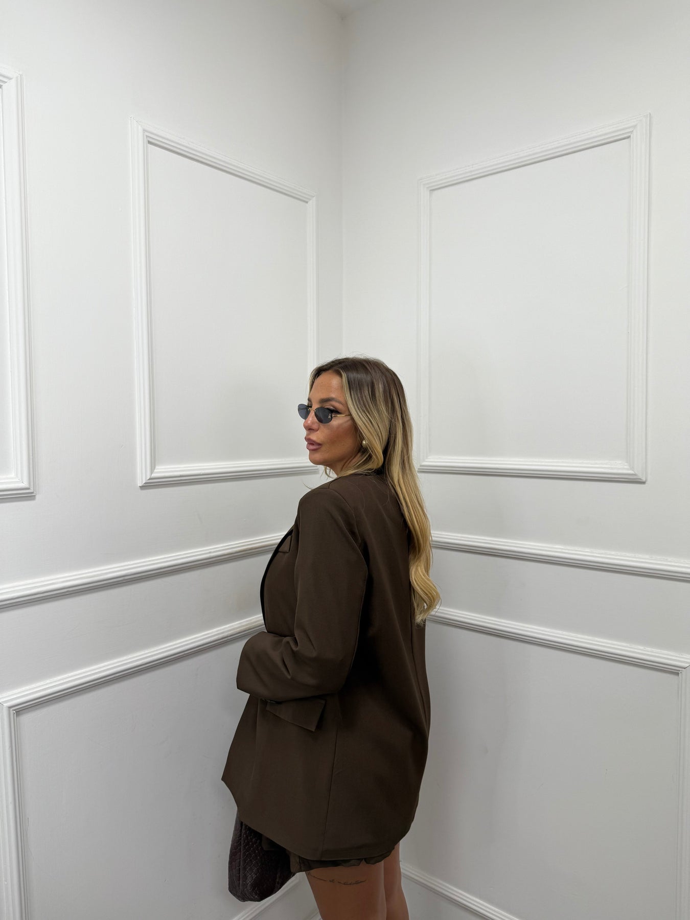 Blazer doppiopetto con spalline cioccolato m11093